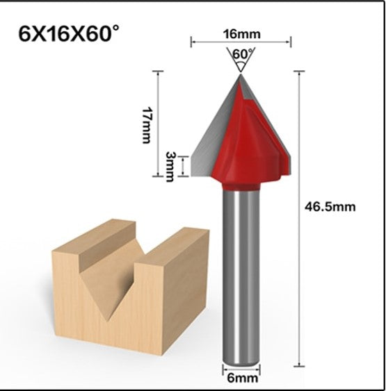 6 X16 V Bit-1PCS,CNC solid carbide end mill, tungsten steel woodworking milling cutter,3D wood MDF router bit, 90 degrees